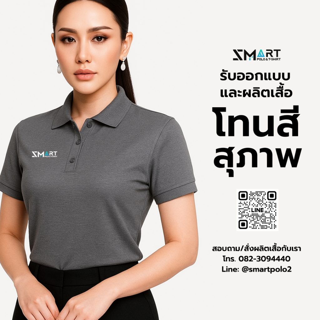 SMART POLO & T-SHIRT เรารับออกแบบและผลิตเสื้อโทนสีสุภาพด้วยเนื้อผ้าเกรดพรีเมียม ที่คุณสามารถเลือกได้ตามความต้องการ กว่า 50 ชนิด ไม่ว่าจะเป็นผ้าไมโคร ผ้า TC TK ผ้าคอตตอน หรืออื่นๆ ที่มีคุณสมบัตินุ่ม เบา สวมใส่สบาย และระบายอากาศได้ดี เหมาะกับการสวมใส่ตลอดวัน
